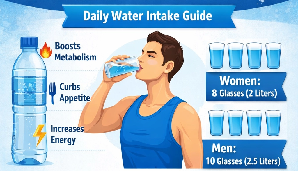 Water supports a calorie deficit but does not replace a proper diet plan.